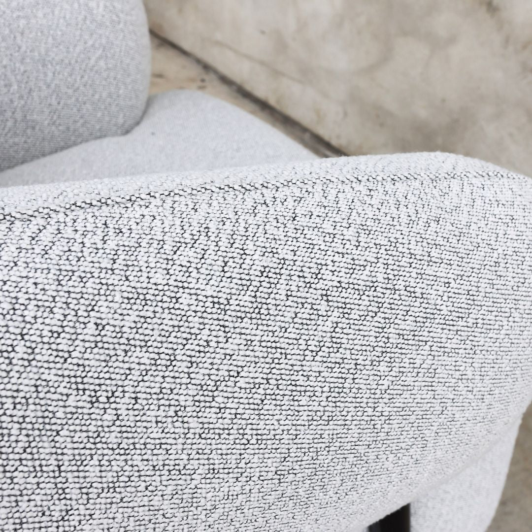 This stunning and robust armchair showcases a well-defined shape that offers both comfort and support; conversely, the sleek wooden legs add a touch of refinement and balance the overall aesthetic.