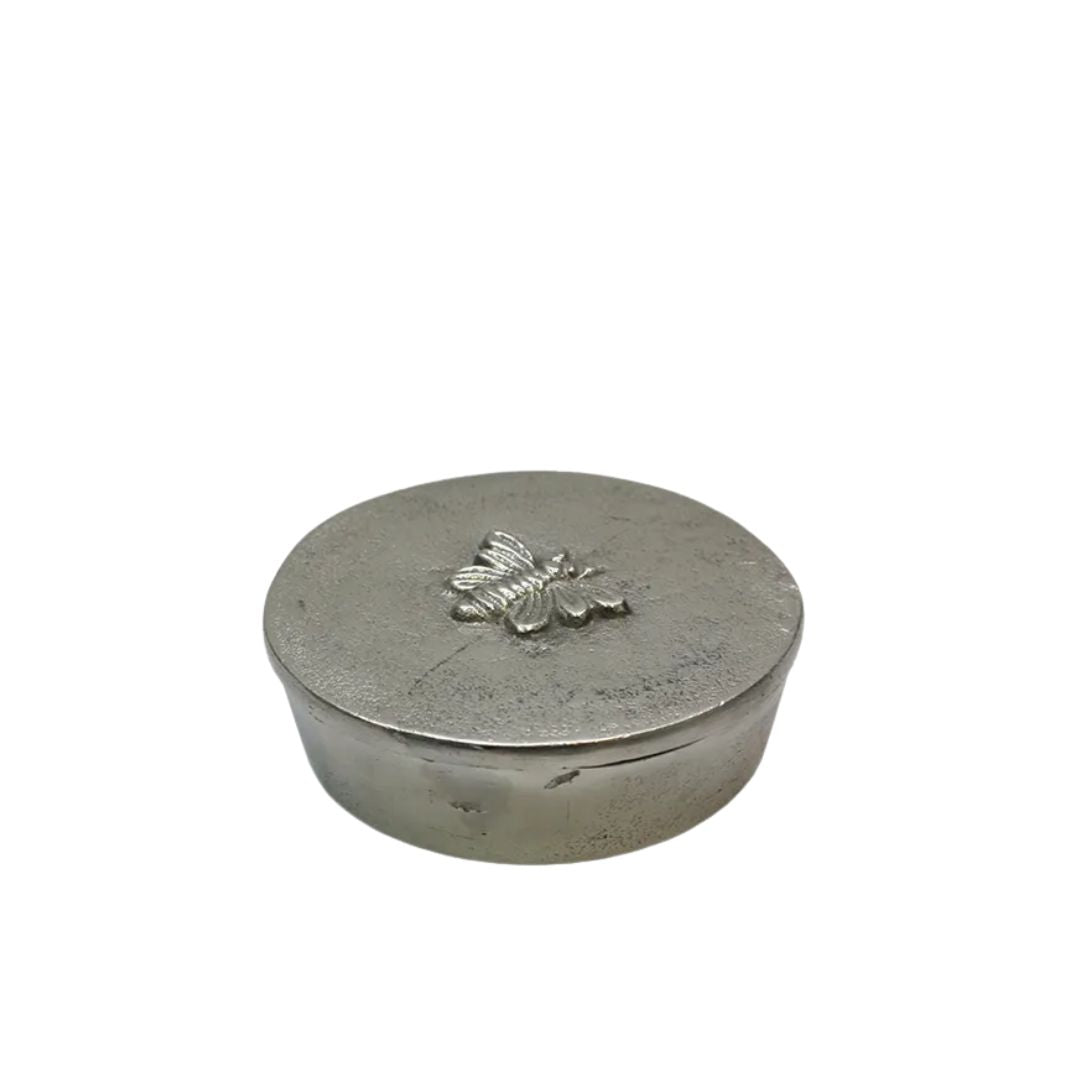 Silver trinket boxes with bee impressions are designed to hold life's smallest treasures.